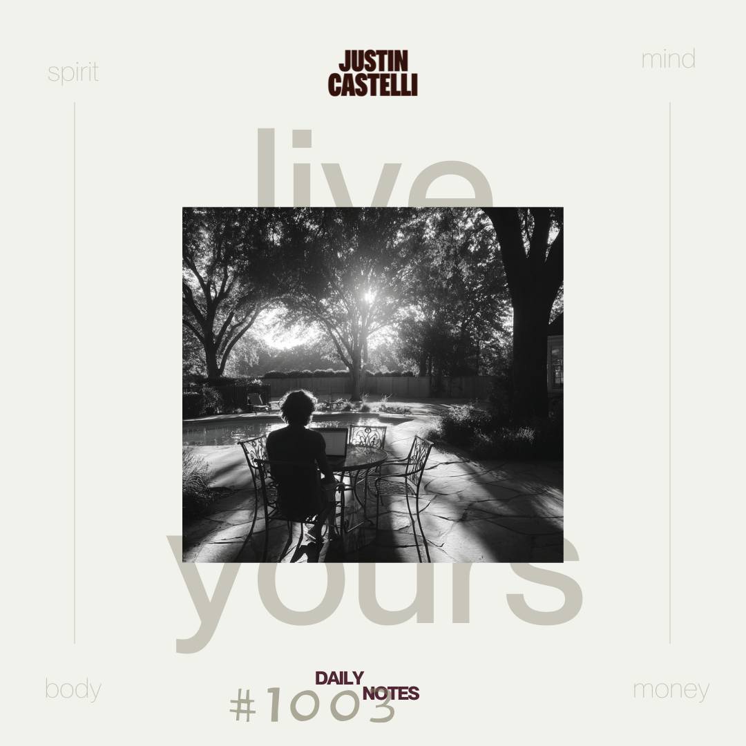 I hope you had a great weekend! Here's this week's Notes... β π this week's Daily Notes9.29.25 #997 hard work doesn't guarantee desired outcomesβ 9.30.25 #998 we'll all be forgotten eventuallyβ 10.01.25 #999 belief before abilityβ 10.02.25 #1000 consistencyβ 10.03.25 #1001 simplificationβ 10.04.25 #1002 matching energyβ 10.05.25 #1003 you have a million problems until you have just oneβ Remember, you can catch each of the Daily Notes on the AlignedLife Podcast Monday through Friday!! β βοΈ AlignedLife SubstackβYour Net Worth Will Never Exceed Your Self-Worthβ πΊ AlignedLife: Convos with Friends with Ashby DanielsI'm starting a series of episodes with a handful of friends I'm calling Convos with Friends (clever, I know), and the first conversation is with my close friend Ashby Daniels. I asked Ashby to join me to continue a conversation we had a few weeks prior about accepting trade-offs in life to pursue what matters most to us. As these conversations often do, we covered the topic at hand and so much more. βApple Podcastsβ βSpotifyβ π The OmensβLife A Simulation? β β If you want to get The Omens when they come up, you can sign up here.β β See you next week (or tomorrow) and keep pursuing, JC |
